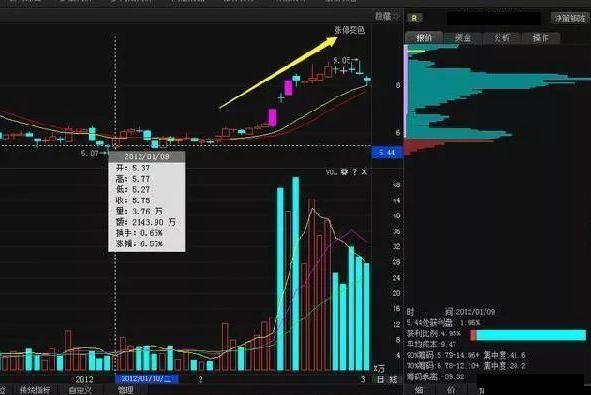 4、放很小的量就能拉出长阳或封死涨停。新股上市后,相中新股的庄家进场吸货,经过一段时间收集,如果庄家用很少的资金就能轻松地拉出涨停,那就说明庄家筹码收集工作已近尾声,具备了控盘能力,可以随心所欲地控制盘面;