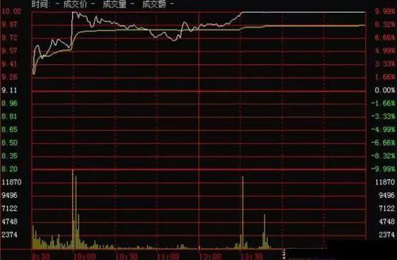 这种情况分时轨迹就像是“小心触电”的标志。股价均线在弱势时是压力线,在强势时通常又是引力线。它通常可以把下挫的股价拉起来,使其掉头走向涨停。